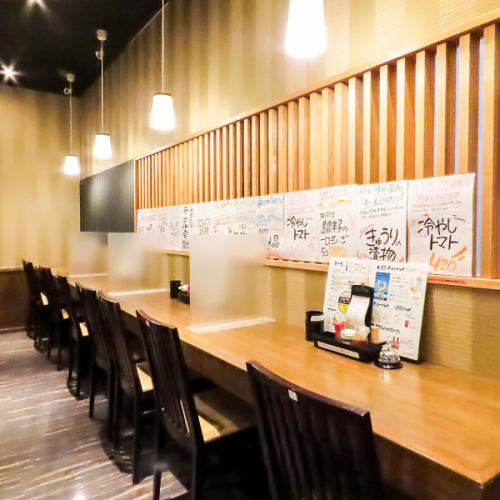 ≪カウンター席≫8席ご用意しており、お一人様でもふらっとお立ち寄りください。当店のカウンター席は、居酒屋ならではの賑やかな雰囲気を楽しむのに最適な場所です♪目の前で調理される料理の香りや音を感じながら、仕事帰りにサクッと一杯にぴったり!美味しい肴と共に、心温まるひとときをお過ごしください!